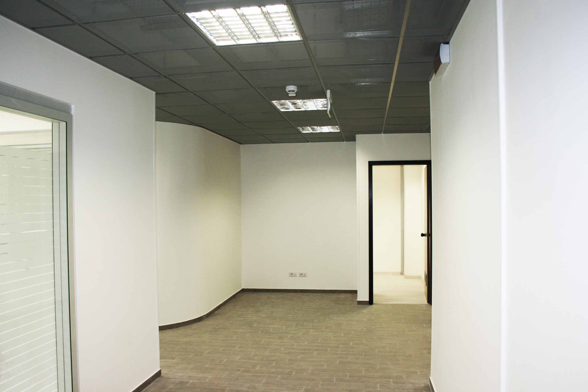 Si è proceduto alla realizzazione di pareti sinuose e ambienti contenitori all’interno di questo ufficio con particolare esigenza di privacy tra i vari locali che lo costituiscono.